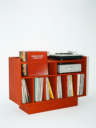 - Display Section: Integrated grooves for 5 records (Face-forward display).